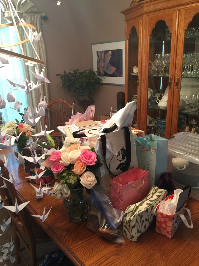 Brenda, you were amazing, and your daughter was gorgeous. The thousand cranes were a perfect decoration, beautiful AND giving the peace message on whatever level one looks. Hope you’re resting well today–and glad you’re not on the hike to the waterfall with everyone (except Karen and me.)